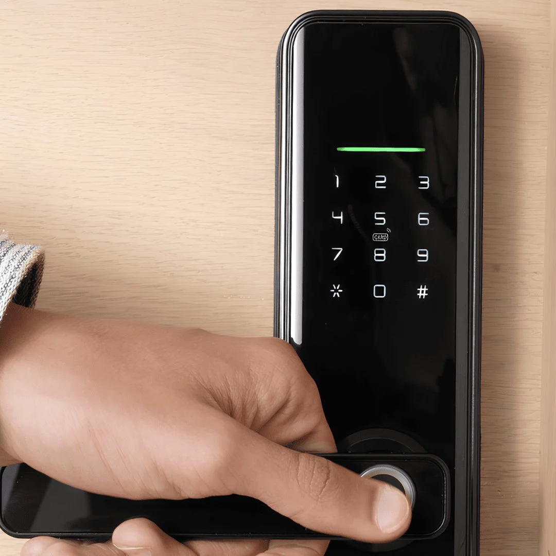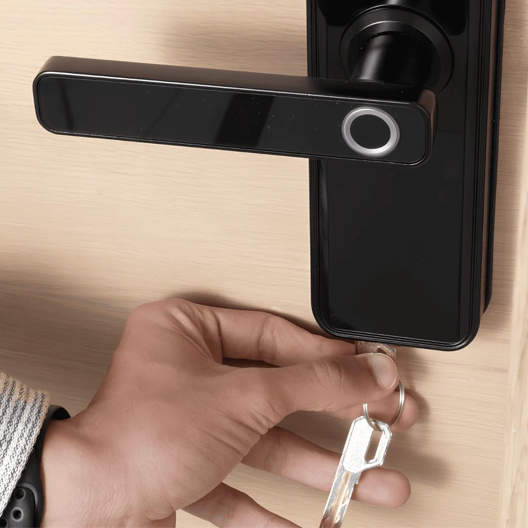 - Accès Sans Clé : Oubliez les clés traditionnelles. Optez pour l’empreinte digitale, le code, la carte ou la clé mécanique de secours.